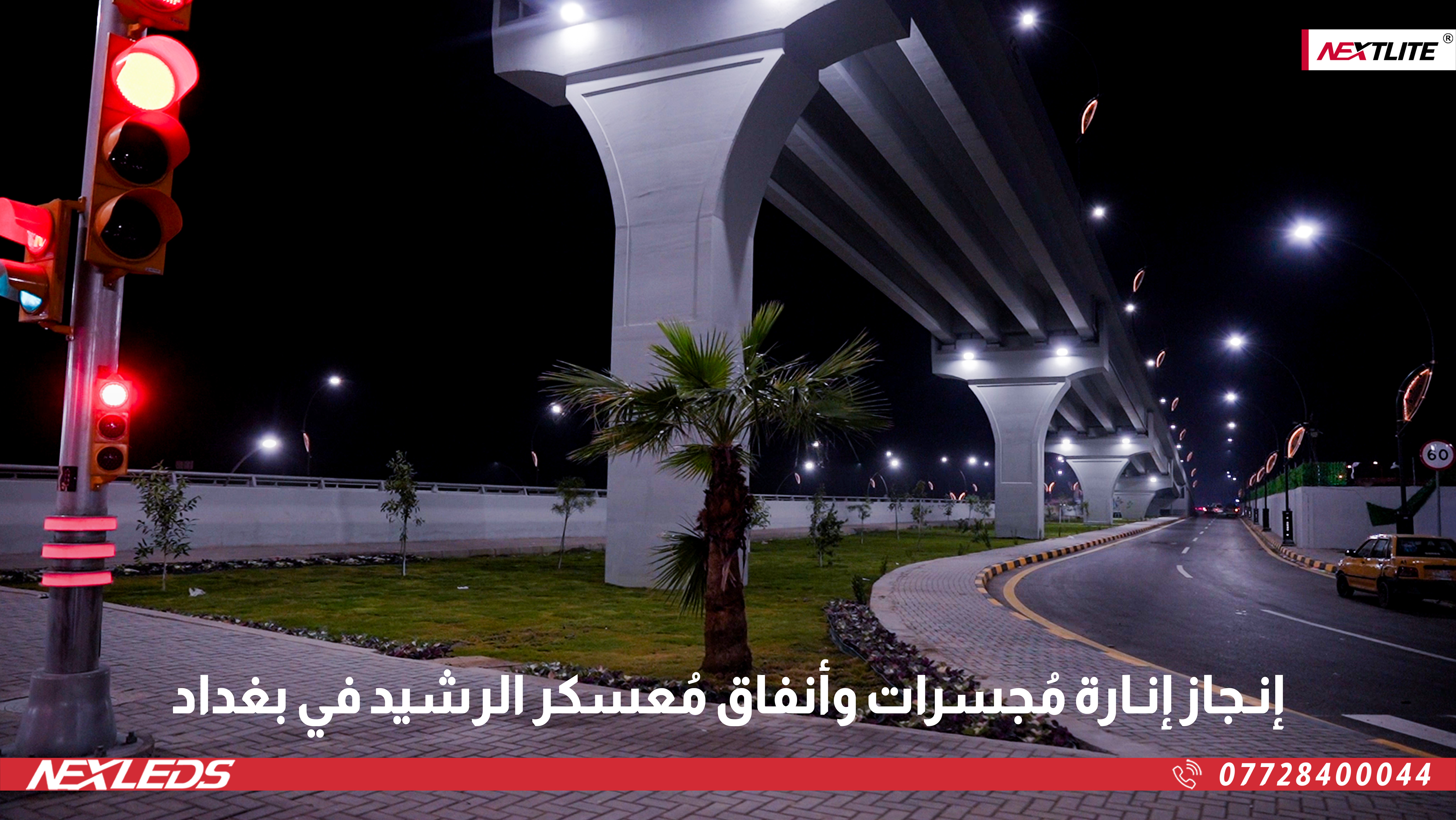 - انارة مجسرات وانفاق معسكر الرشيد في بغداد